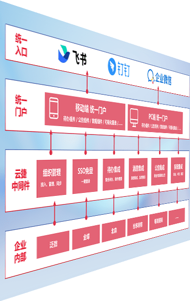 对协作平台提供支持服务,,,支持企业应用与协作平台对接,,,,包含组织同步、、消息集成、、待办集成等。。。支持目前主流的协作平台:钉钉、、、、企微和飞书。。。。